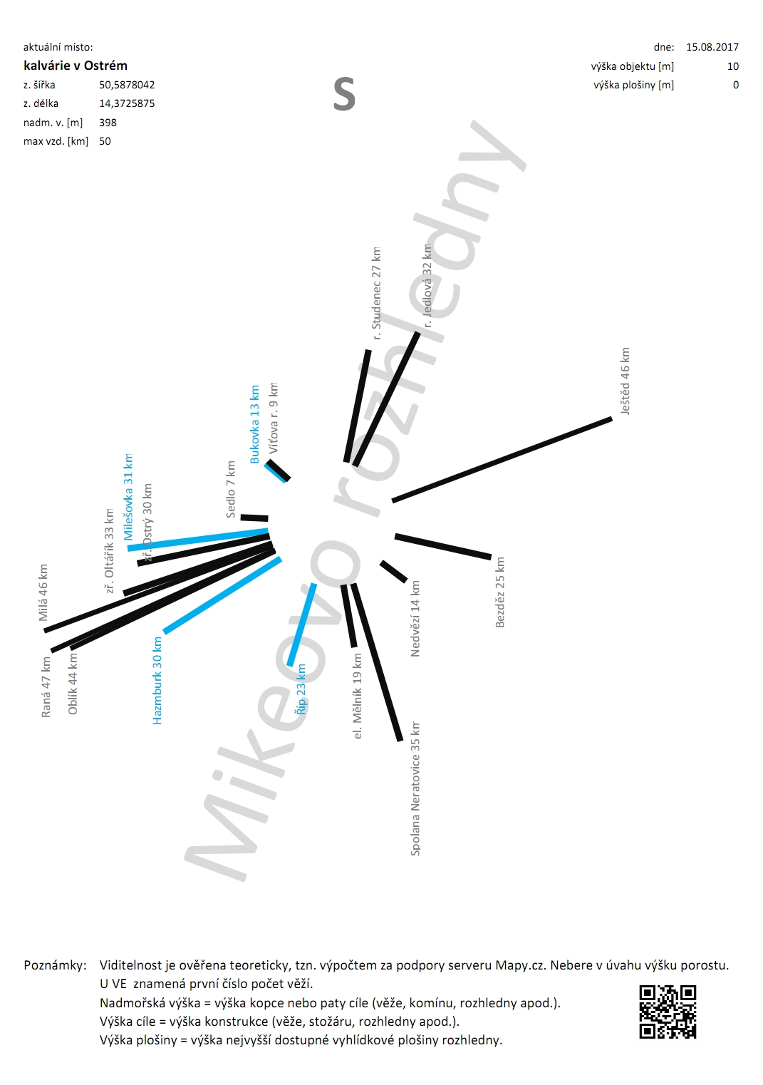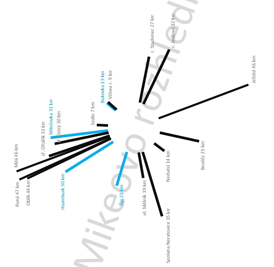 Větrná růžice s cíli do 50 km.